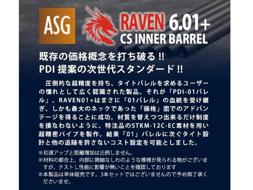 [PDI] RAVENインナーバレル 297mm / 東京マルイ M3,SPAS12 【RAVEN 内径6.01+mm】 (未使用)の販売ページ|エアガン.jp