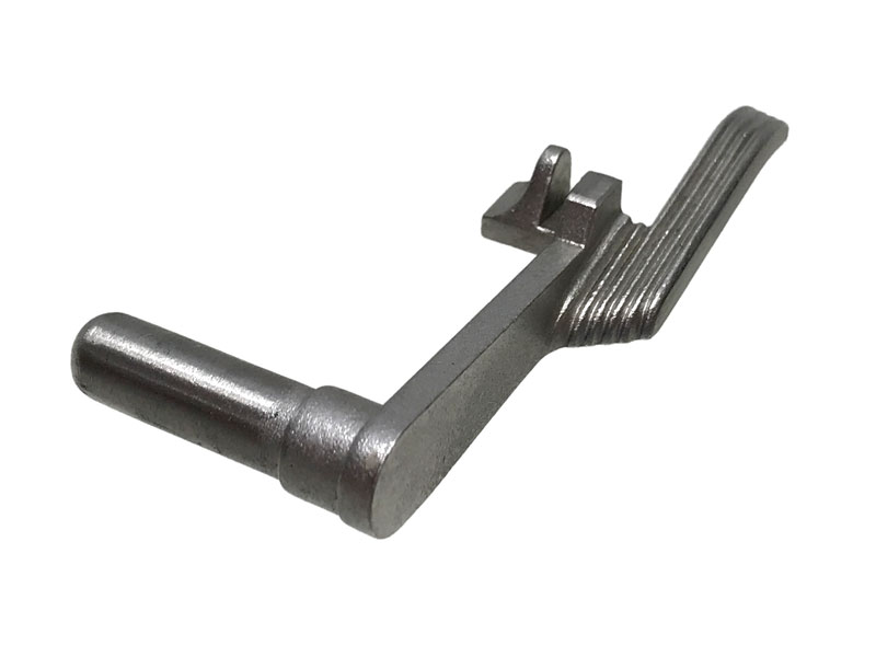 WA GM5用 ステンレス強化パーツ ロングスライドストップ ロストワックス精密鋳造で生まれたステンレス製ブランクを、切削成形で磨き上げたMGC GM5専用の高級強化パーツ。亜鉛ダイキャストでは避けられない経年劣化「亜鉛崩壊」と無縁であることこそ、ステンレス強化パーツの誇りだ。