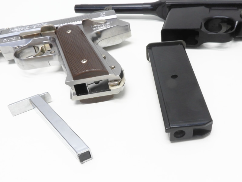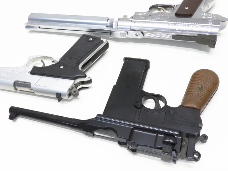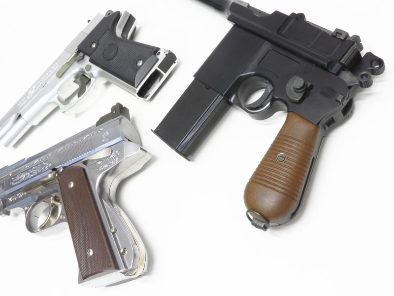 ハンドガンの場合は全体を金属性とする組み換え、エアソフトガンの場合は射出エネルギー0.98J以上にする改造を行うと銃刀法違反となります。HFC134a仕様のガスガンにCO2用マガジンを組み込む、スライドを金属製の物に差し替える等、簡易な改造でも罪に問われる可能性がございますので、絶対にお止めください。
