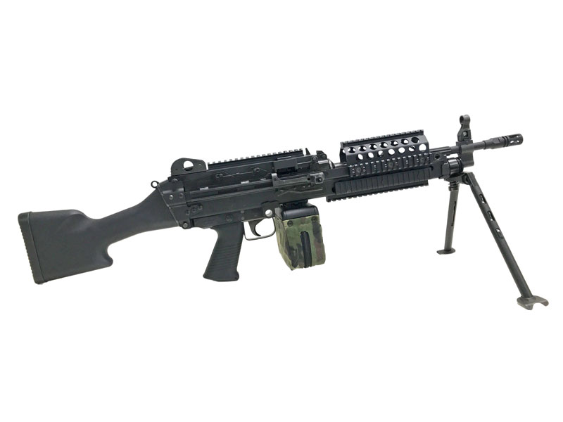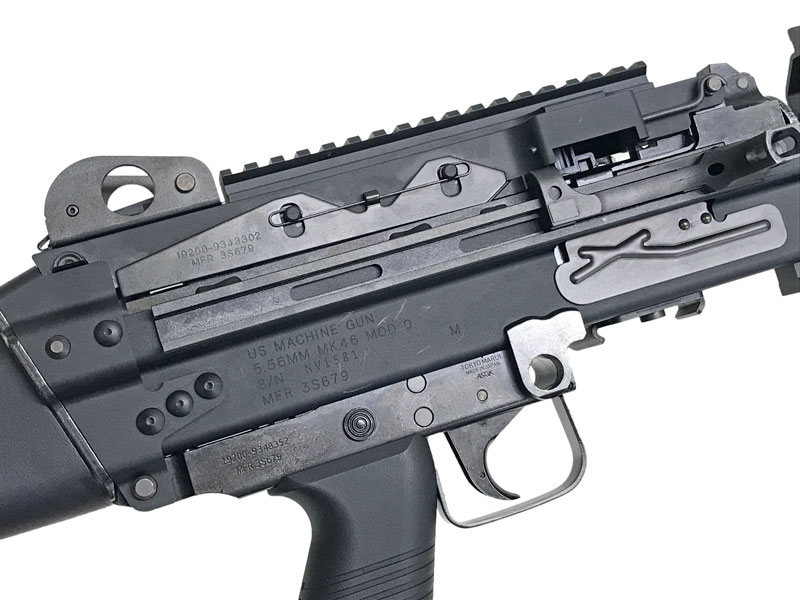 ベルギーのFNハースタル社が開発した軽機関銃。ミニミ軽機関銃の米軍正式採用名がM249、その特殊作戦用のバリエーションM249 SPWにさらに改良を加えたものがMk46 Mod0となる。海軍特殊戦コマンドでの使用を想定したモデルで、各部に軽量化が図られつつストックは通常モデルと同じものが取り付けられている。