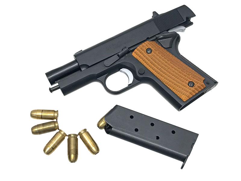 ハンドガンの場合は全体を金属性とする組み換え、エアソフトガンの場合は射出エネルギー0.98J以上にする改造を行うと銃刀法違反となります。HFC134a仕様のガスガンにCO2用マガジンを組み込む、スライドを金属製の物に差し替える等、簡易な改造でも罪に問われる可能性がございますので、絶対にお止めください。