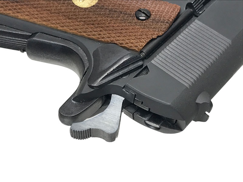 また、近年では珍しくなったグリップセイフティや、今の目からすると最小限といえるくらい小ぶりな排莢口やトリガーガードなど、設計の古さを残しながらも、その外観は今もなお人気を集める。
