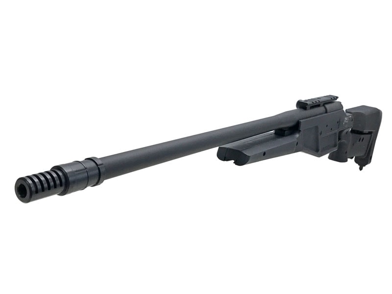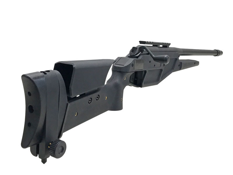 何よりもまず目に付くのはこの近未来的な外観だが、競技用ライフルの発展型なだけあって各部考え尽くされた設計となっている。最も素晴らしいのはボルトアクション時にボルトハンドルを回転させる必要がない画期的なシステム「ストレートアクション」で、ボルトアクションでこれほどの速射が出来る感覚はちょっとクセになりそうだ。