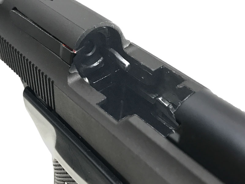 「U.S. 9mm M9」刻印入りスライドがリアルに再現されています。