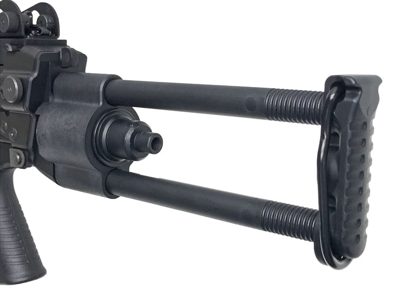 実銃同様のバレルテイクダウン、フィールドストリップ操作を再現。 空撃ちモード切替式。 別売のBOXマガジン(ガスタンク)でより安定したガス供給を実現できます。