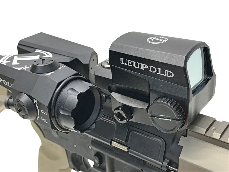 上下調整が可能なフロントサイト、上下左右に調整可能なリアサイトは、光学サイトの使用を考慮した可倒式となっています。また、マウントレイルを介して装着されているため、取り付け位置の変更や脱着も可能です。