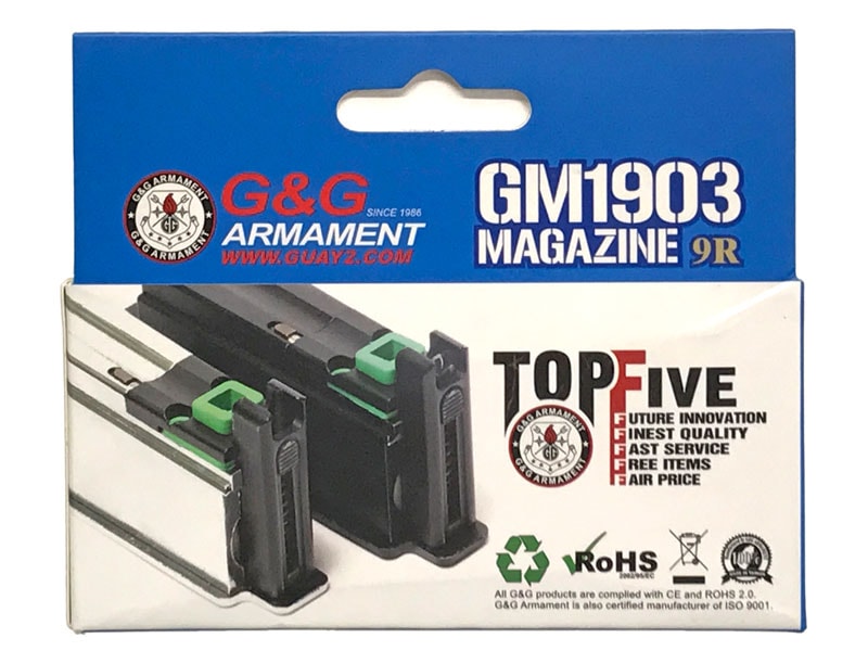 G&G M1903シリーズ対応のスペアマガジンCo2仕様のシルバカラー※フロン仕様の本体に当製品を使用すると法定初速を超えてしまう恐れがあります。フロン仕様の本体に使用する場合は十分に調整を行ってから法に則った初速でご遊戯ください。
