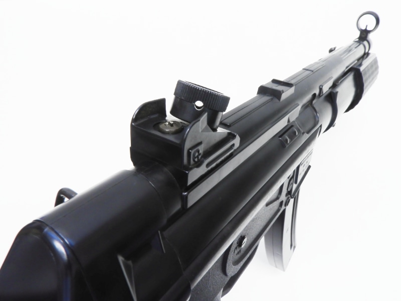 H&K社が1960年代に発表した短機関銃。同社製G3(HK31)のローラーロックシステムをそのままに、短機関銃化したものである。ベースとなったG3同様のクローズドボルトの発火方式であるため、当時一般的だった短距離の瞬発的な面制圧を目的としたオープンボルト式の短機関銃とは一線を画す、目標に『当てる』事ができる命中精度を有する。しかし、それまでの短機関銃に比べ、部品点数が多く構造も複雑であるために高価で整備性や信頼性に不安があり、発売当初のH&K社は大口の取引先となるドイツ軍への納入を断念。それに替わる納入先として西ドイツ警察や国境警備隊に配備され、その他にも極少数が輸出されていたに過ぎなかった。永らく日の当らぬ存在であったが、1977年のルフトハンザ機ハイジャック事件において、MP5を装備したドイツのGSG9が事件を解決したことで一躍有名になり、続く1980年のイラン大使館占拠事件でこのMP5を装備するイギリスSASの映像が世界に公開され、その地位を不動の物とした。現在は世界各国の軍・警察で採用され、SWATや対テロ部隊では標準的な突入用火器として使用されている。日本でも90年代の終わり頃、海保の特殊部隊であるSSTがA5を、2002年のFIFAワールドカップの日韓同時開催に伴う警備強化を機に、警察庁がMP5E2(MP5F)をベースにした独自モデル(フラッシュハイダーを装備し、強装弾に対応。俗称 MP5J)を導入している。現在のH&K社では、受注規模の大小に関わらず、新規のオーダーに関しては従来の基本仕様であったA5ではなく、MP5E2型を勧める傾向が強い模様だ。MP5-A3はA1の改良型で、銃身を「フローティング・バレル」化して命中精度を向上させたモデル。SEFトリガーグループのモデルだが、後期生産型はA4と同じデザイン(点射機能はない)のロアフレームに変更されており、このタイプは「ネイビートリガー」と通称される。