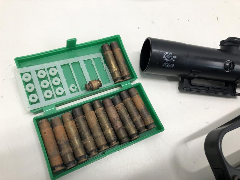 カートはありますがサビが見られます。ボルトの戻りが悪く、装弾などに難ありの為ジャンク品扱い。ある程度経年劣化は見られますがパンフレット、説明書も保管状態は良く、全体的にはそれなりに良好な一品です。外観は特に大きな破損等は見当たりません。