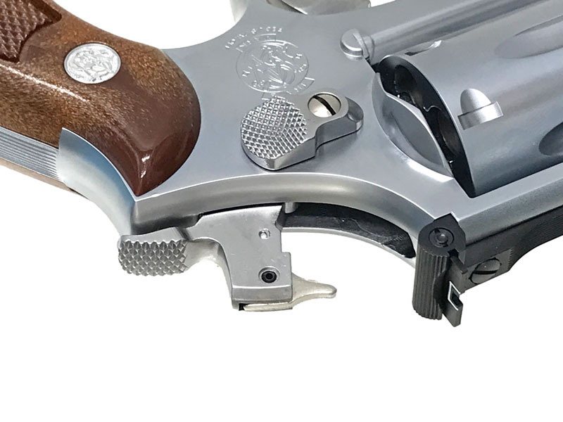 刻印の変更をはじめ、外観形状の見直し、グリップ内にはウエイトも入り、重量はもちろん、構えた時のバランスも向上し、SW特有のウルトラスムーズな作動感の再現や、ステンレスメッキの質感の向上など、M66モデルガンの決定版がバージョン3モデルで登場です。