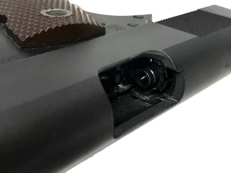 「M1911」の改良型が「M1911A1」である。チェッカー付きのショートトリガー、トリガー付け根のリーフカット、ハンマーバイド対策のロンググリップセーフティやラウンドのチェッカーのメインスプリングハウジングなどが改善点とされている。