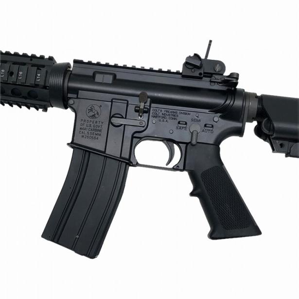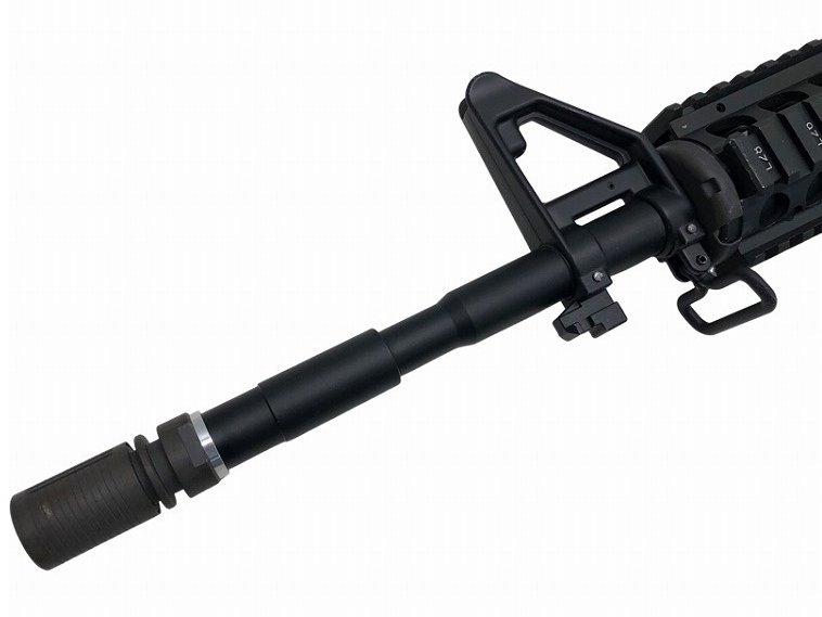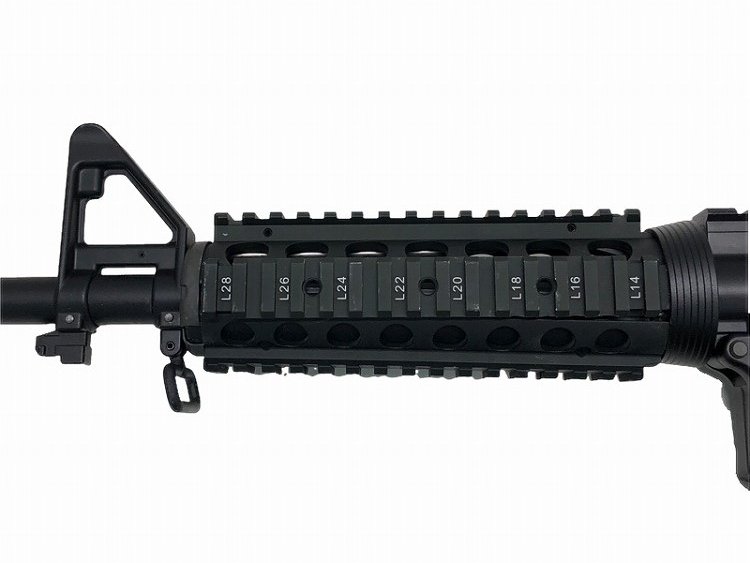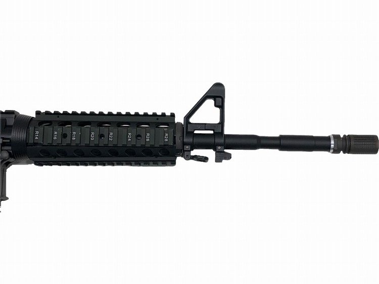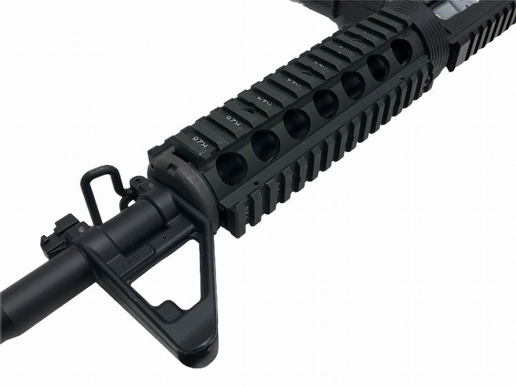 ナンバリングが再現され、アルミ製ヒートシールドが内蔵されたアルミ製ハンドガードを はじめ、BUISフリップアップ・リアサイト、QDスリングベルが付属したクレーンタイプ ストック、ナイツタイプのフラッシュハイダーといったハイグレードなデラックス仕様の パーツを多数搭載。米国特殊作戦軍SOCOMで使用されるSOPMODモデルを完全再現! 一般的な14.5インチアウターバレルを装備した、カービン・タイプ!
