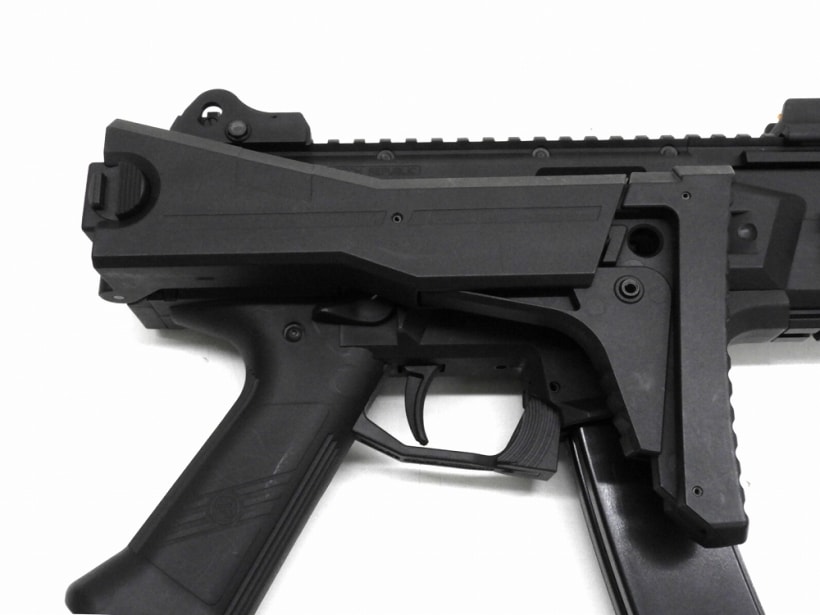 ASG SCORPION EVO3A1 P-09 Dutyピストルの登場後も進化を続ける欧州Cz社の次世代サブマシンガンが、正式ライセンスを取得して登場。実銃同様のグラスファイバーポリマー外装を流用し、電子制御ユニット(ECU)による高精度な作動を実現。
