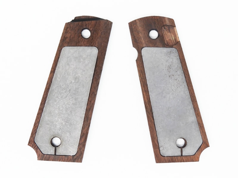 [CAW] M1911 ガバメント ダイヤチェッカー ウォルナットウッドグリップ グリップウエイト付属 黒塗装 (中古)の販売ページ|エアガン.jp