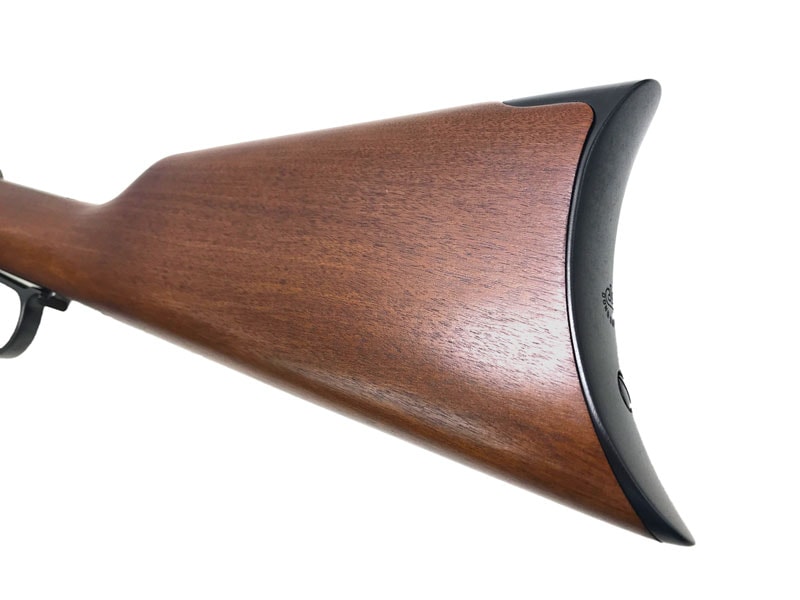 M1873の原点であり一番美しいとされるライフル・タイプ。オクタゴン(八角)の24インチ・テーパー銃身とアメリカン・ウォールナットの銃床先台、それにクロームメッキの各パーツがこの作品の見どころ。スペアマガジン一本標準付属。