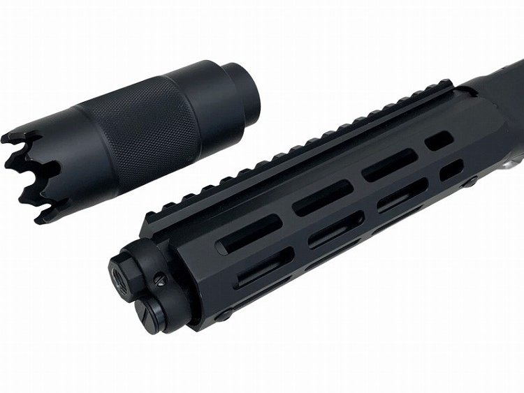 CO2+ライブカート+M-LOKはなかなかレアな組み合わせ。後部ストック内部にCO2ボンベを入れます。(ボンベが入っている場合がありますのでご注意ください)