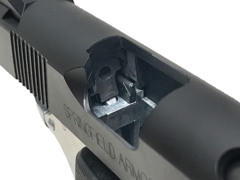 MGC 【SFA V10 Ultra Compact】 スライド先端のラウンド加工された穴からのぞくアウターバレルの10個の穴が特徴的。スプリングフィールド・アーモリー社が開発したコルトガバメント ベースのコンパクトモデルでありその刻印も再現されている。