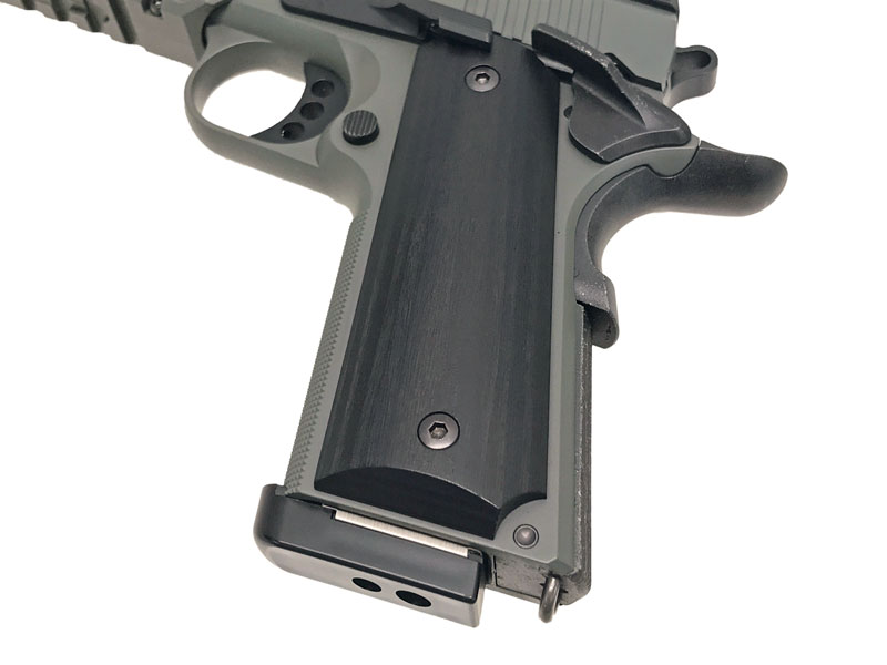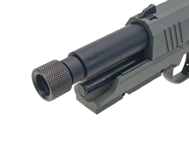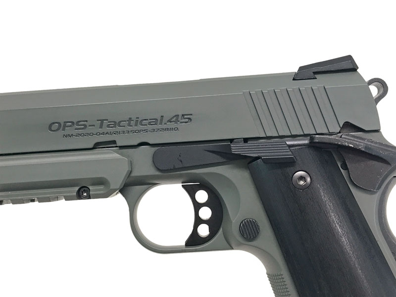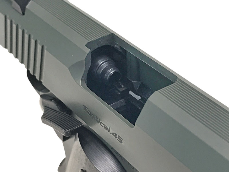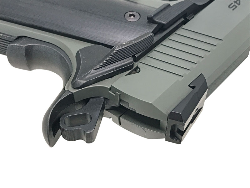 取り回しのよいコマンダーサイズ(4.3インチバレル)のボディに、BDUに採用され注目が集まっているフォリッジグリーン(草木色)に身を包んだこのモデルは、多彩な戦闘領域、複雑な戦術行動に順応する「全領域戦闘ハンドガン」の名にふさわしい仕上がりとなっています。