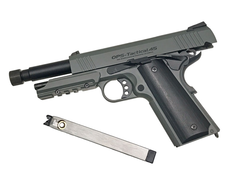 ハンドガンの場合は全体を金属性とする組み換え、エアソフトガンの場合は射出エネルギー0.98J以上にする改造を行うと銃刀法違反となります。HFC134a仕様のガスガンにCO2用マガジンを組み込む、スライドを金属製の物に差し替える等、簡易な改造でも罪に問われる可能性がございますので、絶対にお止めください。
