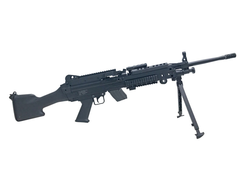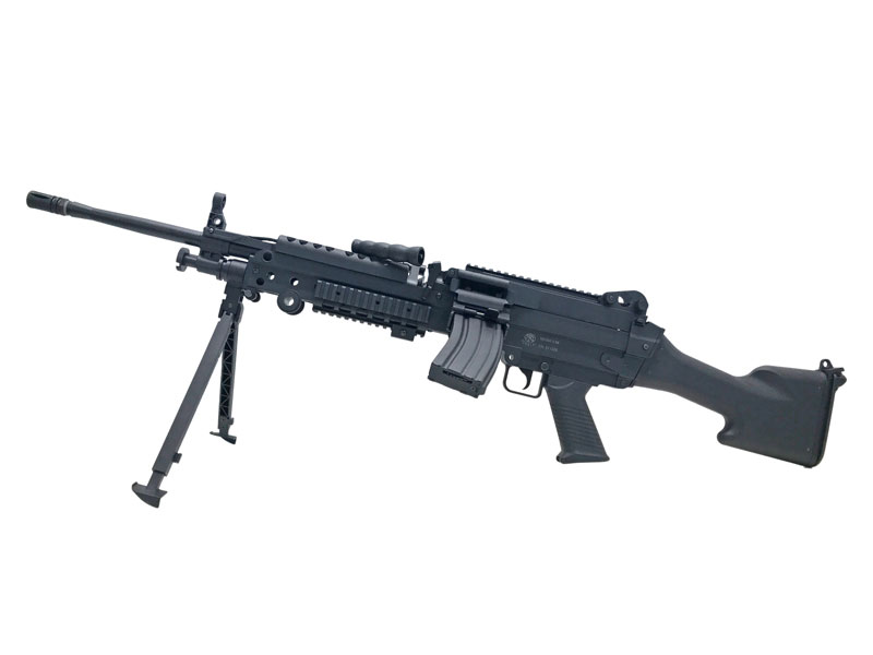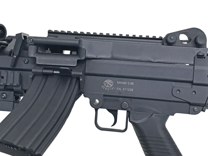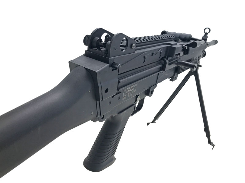 [S&T_CYBERGUN] M249 SAW E2 スポーツライン BK 電動ガン リアル刻印仕様 ストックピン穴加工跡あり (訳あり)の販売ページ|エアガン.jp