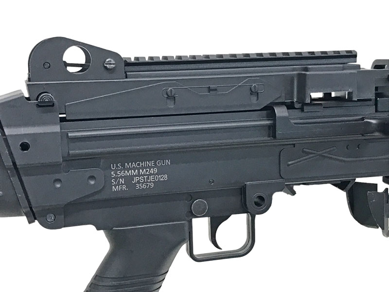 [S&T_CYBERGUN] M249 SAW E2 スポーツライン BK 電動ガン リアル刻印仕様 ストックピン穴加工跡あり (訳あり) 製品詳細画像3
