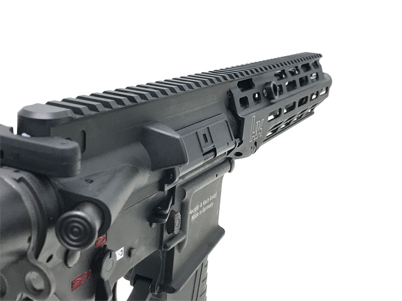 表面処理にCERAKOTE塗装が施され 正式ライセンスに基づいた彫り刻印・白刻印が再現されたレシーバーグループに、 スチール製アウターバレルとアルミCNCで製作された最新のQD M-LOK ハンドガードを採用しており、 外装パーツの構成としても非常に充実した構成で、GHKらしい仕上がりとなっています。