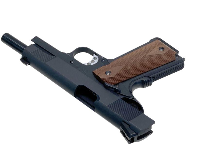 コルトM1911A1ミリタリーのフレームにスプリングフィールド社のスライドを組み合わせたモデル。