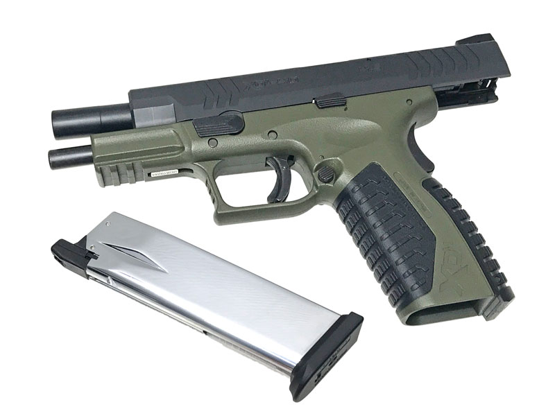 グロックシリーズをはじめ、数々のポリマー(樹脂製)フレーム・オートをラインナップしてきたガスブローバックシリーズに、XDM-40がラインナップ!製作するにあたって、本物から採寸と型取りを行い、ディテールやサイズ、ボディカラーや表面に施されたシボ加工の具合などを細部まで再現しました。