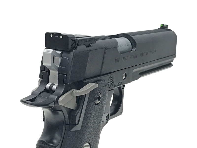 カスタム品 シャーシ、サムセーフティ、に加えてマガジンの放出バルブも交換されたカスタム品。ファイアリングプレートもSCW3の物となっています。初速69-71m/sで動作性抜群。