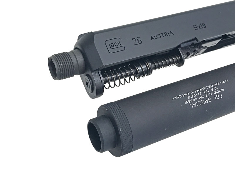 グロック27 タイプスライド バレル サプレッサーセット KJ製グロック27バレル、KSK G27刻印サプレッサーとマルイG26アッパーアッセンブリのセット。簡単な組み換えでG26をG27に!