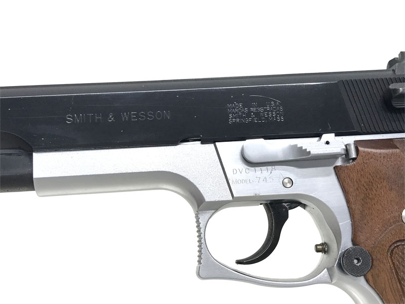 S&W社が初めて開発したダブルアクション方式の.45口径自動拳銃「M645」のコンペティションモデルとして、1000挺限定で発売されたシングルアクション式競技用拳銃。M745は、S&W初のダブルアクション.45であるM645をシングルアクションとしたモデル。競技用ということで、トリガーストップやエクステンションマガジンキャッチなどのカスタムが施され、ハンマー、リアサイトなどの各パーツも競技に最適化されている。