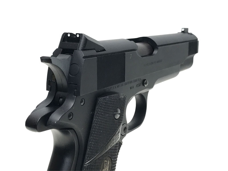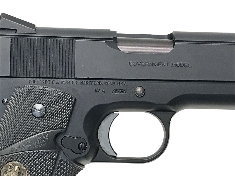 「あぶない刑事」の主人公が使うガバメントカスタムワイルドホーク。スライド"および"メインスプリングハウジング"を一つ一つノーマルスタイルパーツから削り出して製作。 特徴的なスライドのきりかきライン、ラブレスチックなハウジング。ガバメント・シリーズ80 カスタム、という目線でも魅力的で現在ではとてもレアな一品。