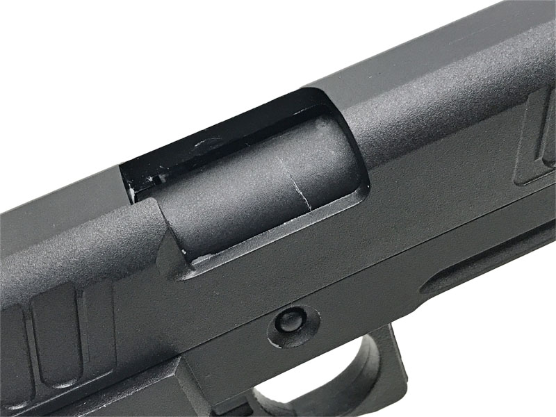スライド/ブリーチ上部のリアサイトカバーを取り外すことで、実銃同様別売りのマイクロドットサイトを直接マウントすることが可能。4.25インチバレルによる軽快なハンドリング性により、インドアなどの狭所での取り回しの良さも向上!