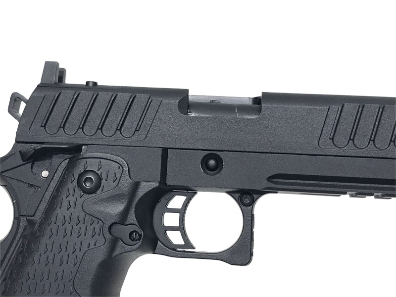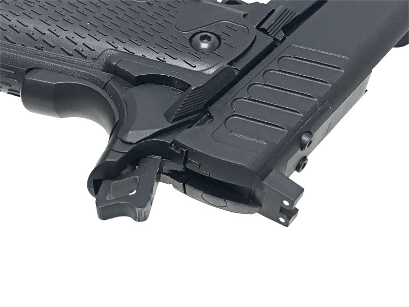 ハンドガンの場合は全体を金属性とする組み換え、エアソフトガンの場合は射出エネルギー0.98J以上にする改造を行うと銃刀法違反となります。HFC134a仕様のガスガンにCO2用マガジンを組み込む、スライドを金属製の物に差し替える等、簡易な改造でも罪に問われる可能性がございますので、絶対にお止めください。