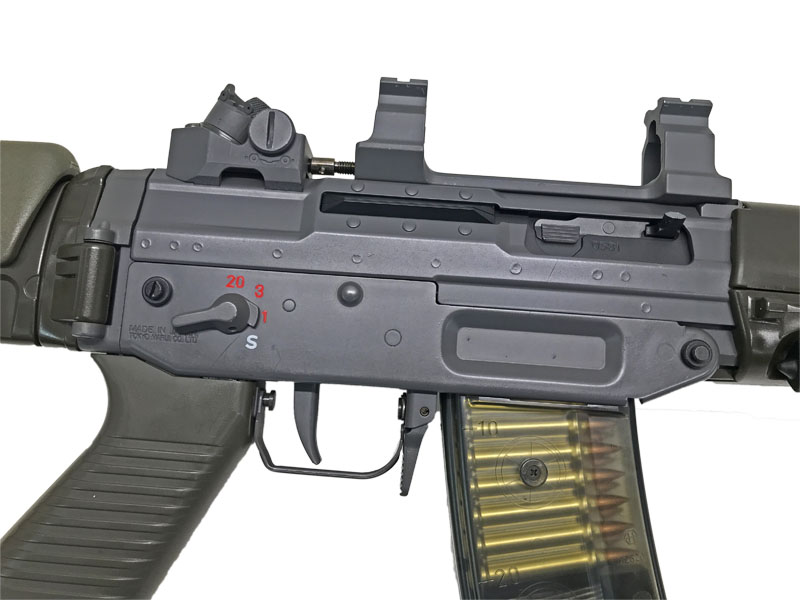 電動ガン史上比較的前期のモデルではあるが、金属パーツなどを使い剛性はしっかりしている。バイポッドはスムーズに引き出せ伏せ撃ちがやりやすい。また マガジンはジョイントクリップなどなしでもそのまま同タイプのマガジンと連結ができる。ストックは折りたたみでき、たたむとコンパクトに扱える。
