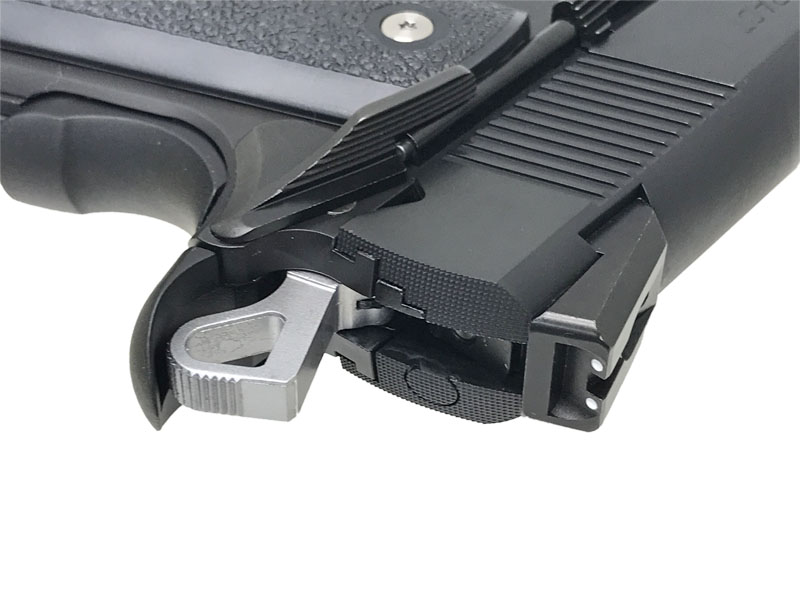 ハンドガンの場合は全体を金属性とする組み換え、エアソフトガンの場合は射出エネルギー0.98J以上にする改造を行うと銃刀法違反となります。HFC134a仕様のガスガンにCO2用マガジンを組み込む、スライドを金属製の物に差し替える等、簡易な改造でも罪に問われる可能性がございますので、絶対にお止めください。