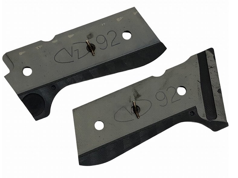 VZ GRIPSの実銃用グリップです。ベレッタM92シリーズ用。握りこむ部分を特に薄く作っているパームスウェルタイプ。グレーブラック。G10素材。