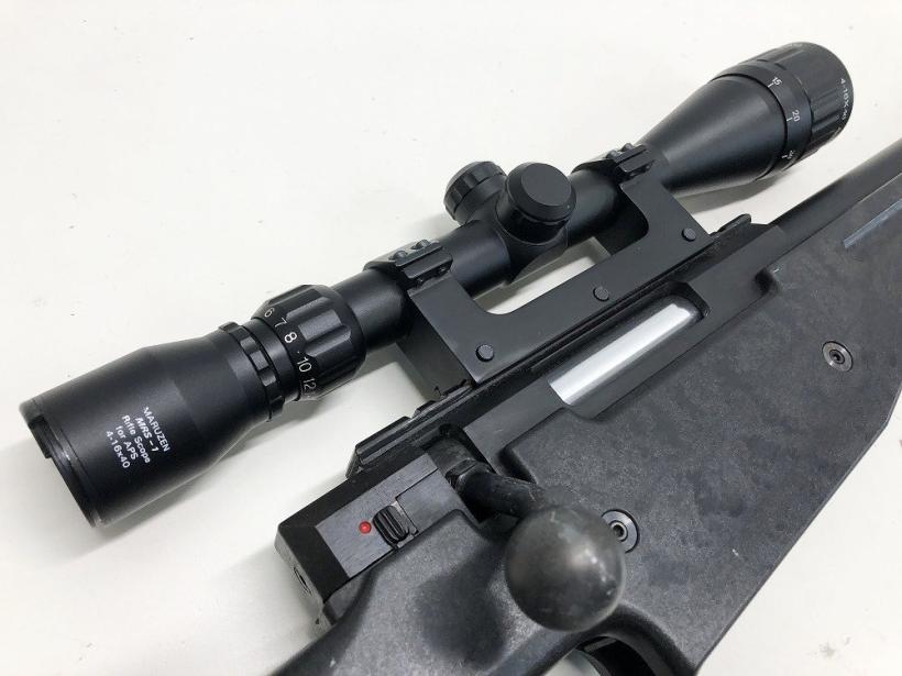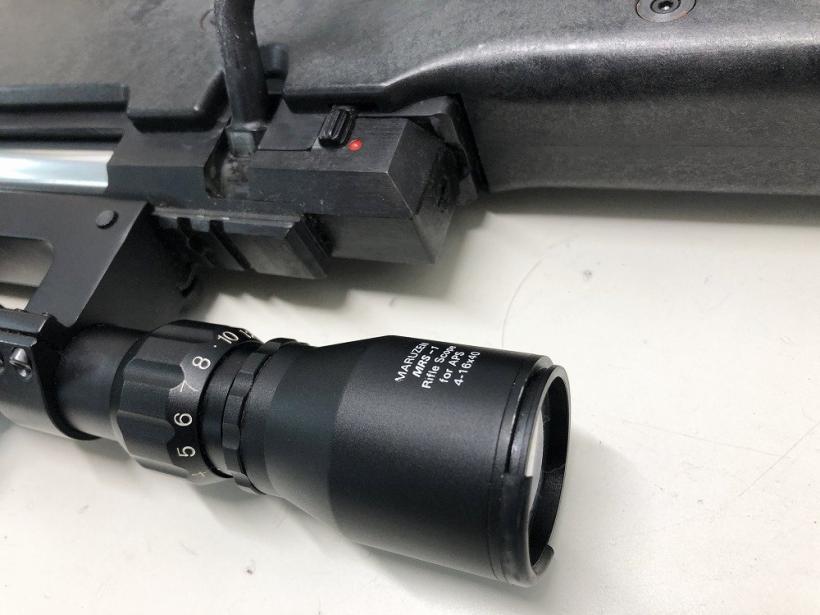 付属スコープはマルゼン純正  MRS-1 / 4-16x40 マウントもマルゼン純正 APSシリーズ用のMB-2 マウントベース が取り付けられれています。