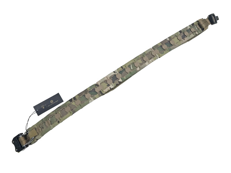 レーザーカットに特化した撥水性ナイロン「スコードロン」と、高剛性の「CURV®シート」、さらに1インチチューブラーウェビングを組み合わせた多層構造設計。軽量ながら十分なMOLLEスロットを備え、シューティング用途に最適なガンベルトです。
