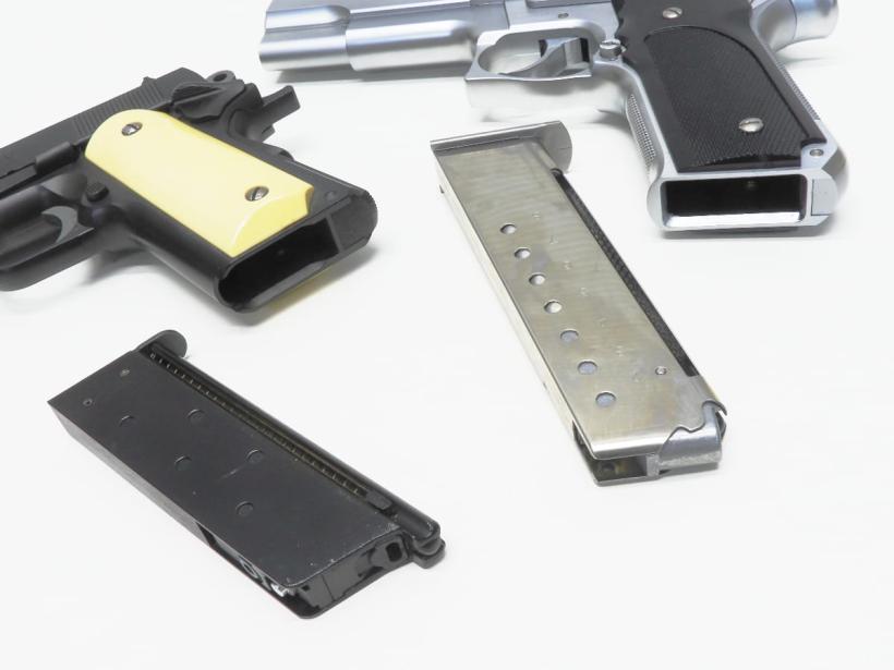 ハンドガンの場合は全体を金属性とする組み換え、エアソフトガンの場合は射出エネルギー0.98J以上にする改造を行うと銃刀法違反となります。HFC134a仕様のガスガンにCO2用マガジンを組み込む、スライドを金属製の物に差し替える等、簡易な改造でも罪に問われる可能性がございますので、絶対にお止めください。