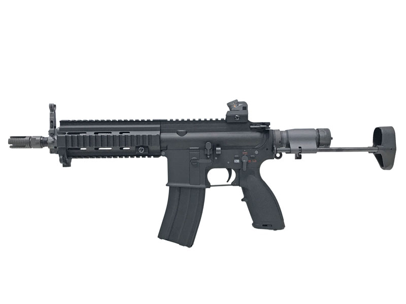 最新のV3システムを搭載して生まれ変わったWE HK416C! HK416Dを可能な限り短縮したHK416C。最も特徴的かつ独創的な伸縮式ストックをトイガンでもしっかりと再現しており、専用フォールディングフロントサイトも装備するなど力の入ったモデル 2024年夏に発売されたWEのM4系ライフルは、新型システムの"V3"を搭載。機関部の材質と設計を変更して耐久性と作動性を向上しました。 主にはボルトキャリアとトリガーボックスが改良され、ボルトストップ周りがスチールに変更されたことで、確実なボルトストップ動作と耐久性を獲得。 前モデル(V2、またはオープンボルトと呼ばれる)で破損の多かったバルブブロッカーは厚みを増して強度を向上し、ハンマーを新規形状に、バルブノッカーもスチールパーツになりました。 マガジンも新型V3マガジンとなっており、改良されたボルトストッププレートを搭載。これにより従来のV2マガジンは廃番となり、今後の生産は全てV3マガジンに切り替わります。 新しいV3マガジンは後方互換があり、V2本体にも使用可能。逆に従来のV2マガジンはV3本体には非対応となりますのでご注意ください。 台湾製GBBライフルとしては長年製造され、愛されてきたWEのM4/M16シリーズ。長い間に蓄積された改良点を反映して、いよいよ登場した新システムのV3シリーズは、従来モデルよりも長く安定した動作が期待できるようになったオススメのGBBライフルです。