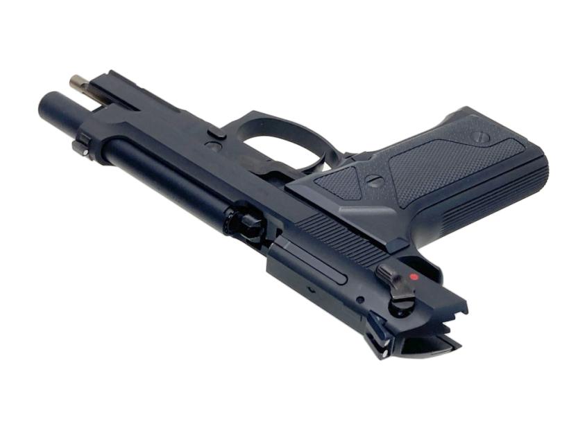 ハンドガンの場合は全体を金属性とする組み換え、エアソフトガンの場合は射出エネルギー0.98J以上にする改造を行うと銃刀法違反となります。HFC134a仕様のガスガンにCO2用マガジンを組み込む、スライドを金属製の物に差し替える等、簡易な改造でも罪に問われる可能性がございますので、絶対にお止めください。
