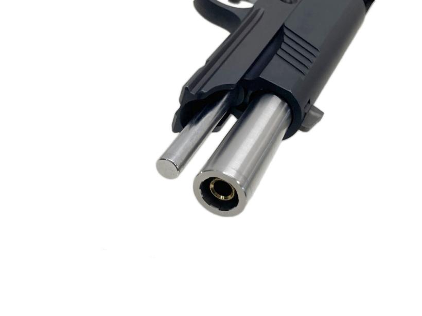 ハンドガンの場合は全体を金属性とする組み換え、エアソフトガンの場合は射出エネルギー0.98J以上にする改造を行うと銃刀法違反となります。HFC134a仕様のガスガンにCO2用マガジンを組み込む、スライドを金属製の物に差し替える等、簡易な改造でも罪に問われる可能性がございますので、絶対にお止めください。