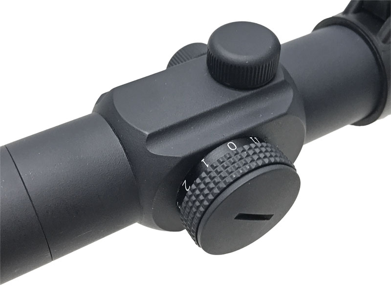 チューブ径30mmで各社マウントに適合。5MOAドットと11段階輝度調整を搭載。新型「Xシリーズ」では AR コート強化ガラスを採用し、カバー非装着時でも高い防護性能を確保。マット仕上げの精悍な外観。