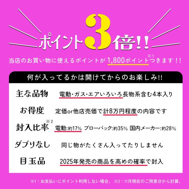 [エアガンJP2026 新春福袋] ポイント3倍 定価/通常価格合計8万円以上 6万円 ガス エア 電 バラエティ 福袋 (新品)の販売ページ|エアガン.jp
