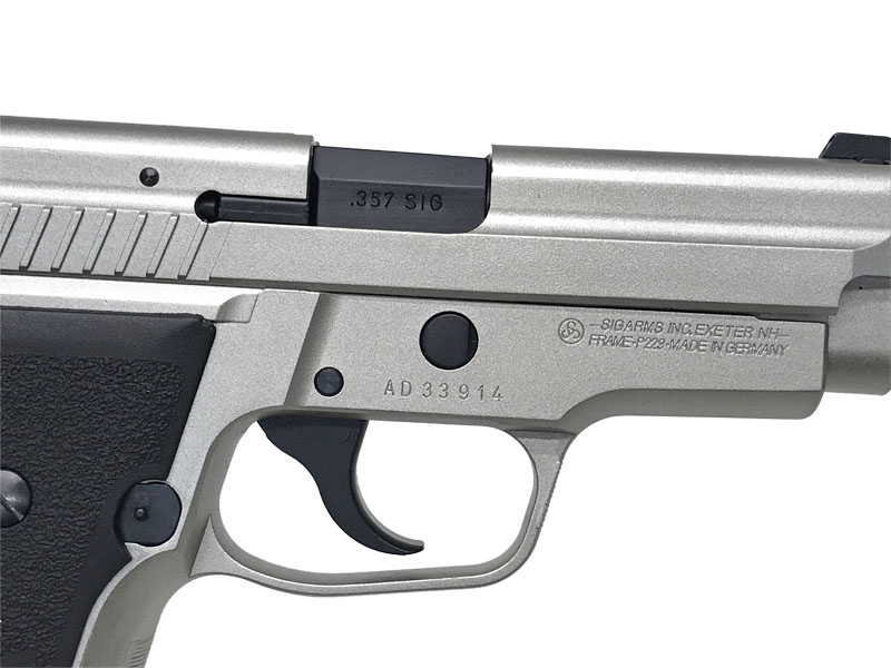 P229開発時点でスライドにも使用されているステンレス素材は当時、一般的になりつつありましたが、美観を重視する人も多くファクトリー製でサテン仕上げのニッケルメッキが施されたモデルも少量生産されていました。