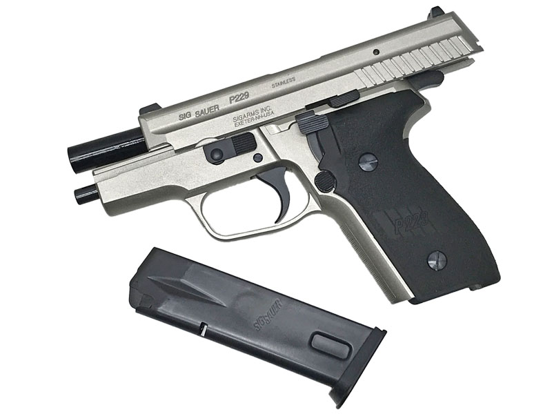 SIG P229は、.357SIGや.40SWといった強力な弾薬に対応するため、耐久性に優れたステンレス製スライドを採用して登場したモデル。