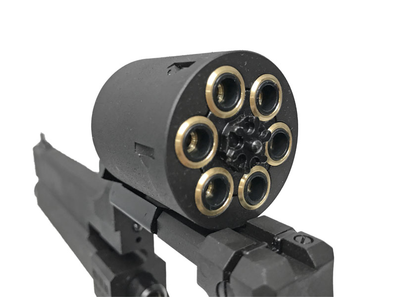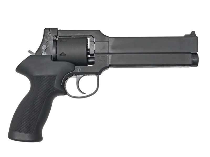 シリンダーが上方にスイングするなど攻殻機動隊好きにはもちろん、変わった銃好きにも楽しめる銃。グリップも握りやすく慣れてしまえば楽しい。