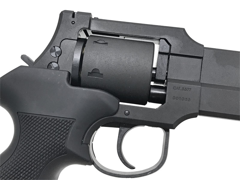 シリンダーが上方にスイングするなど攻殻機動隊好きにはもちろん、変わった銃好きにも楽しめる銃。グリップも握りやすく慣れてしまえば楽しい。