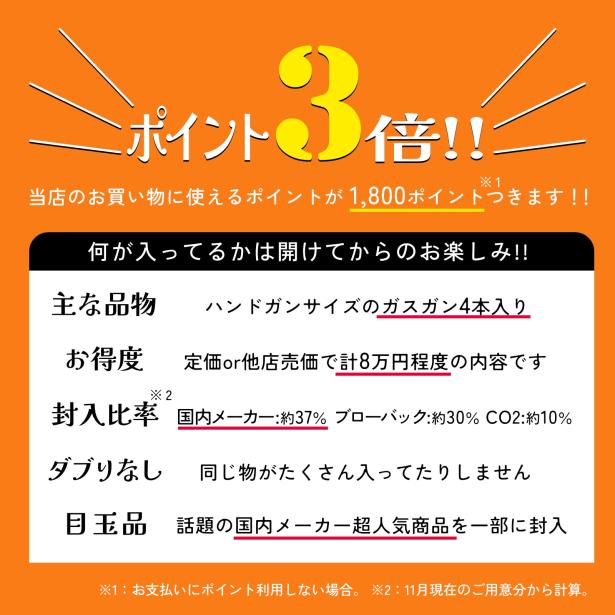 [エアガンJP2026 新春福袋] ポイント3倍 定価/通常価格合計8万円以上 6万円 ガスガン 4丁 福袋 (新品)の販売ページ|エアガン.jp